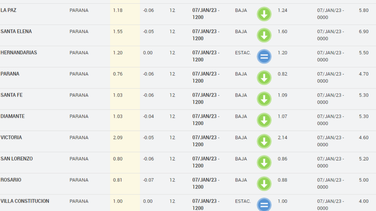 Estos son los datos del río Paraná de este sábado 7 de enero: