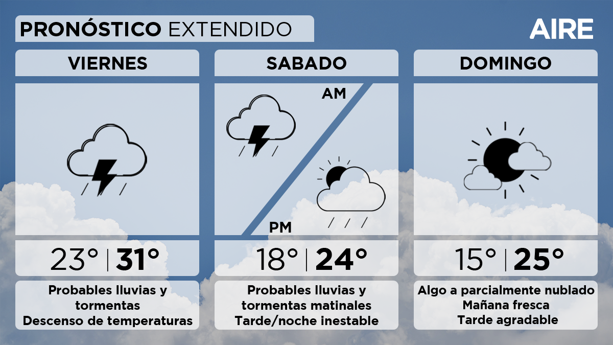 Si bien queda algo de nubosidad y las condiciones de mantendrán "algo inestables", las condiciones mejoraron mucho con respecto a lo que indicaban los modelos de pronóstico hace algunas horas. "Puede llegar a caer alguna llovizna durante el día, pero las condiciones vienen mejorando según los modelos", dijo Lucero en AIRE.