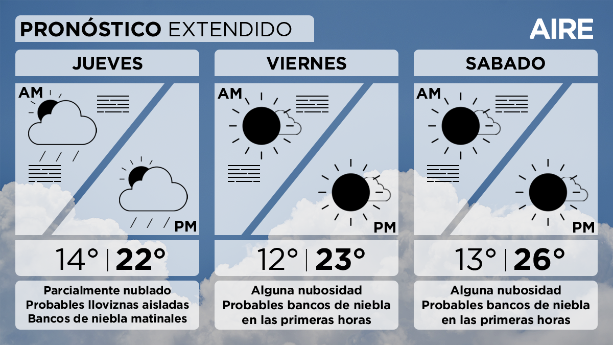 Asimismo señaló que "las temperaturas continuarán con poco cambio y se espera que puedan producirse bancos de niebla en las primeras horas hasta el fin de semana inclusive".