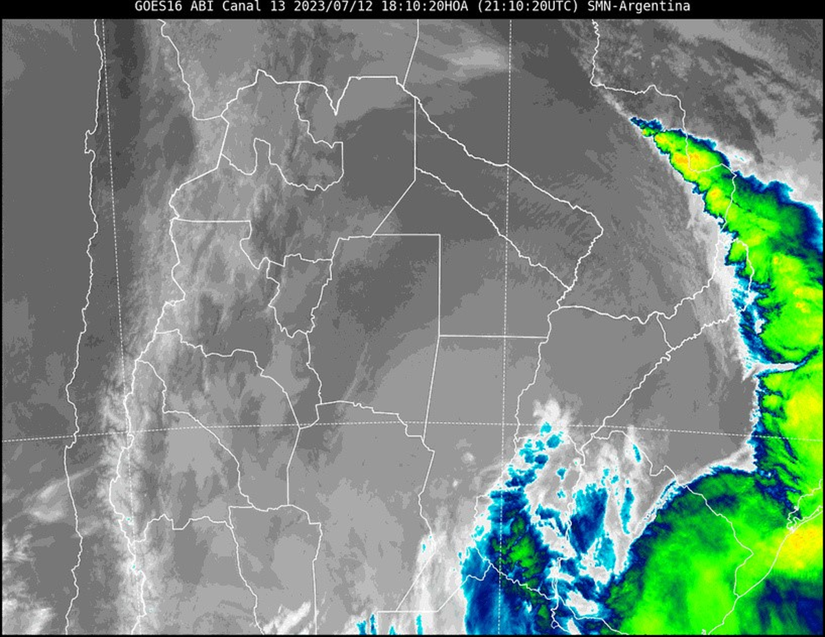 El experto en clima Pablo Lucero indicó que "en la imagen satelital se observa que continuamos con abundante nubosidad en la región, que produce lloviznas generalizadas e intermitentes, visibles en la imagen satelital. Esta situación se extenderá durante la noche, pudiendo comenzar a mejorar en horas de la madrugada o la mañana del jueves".