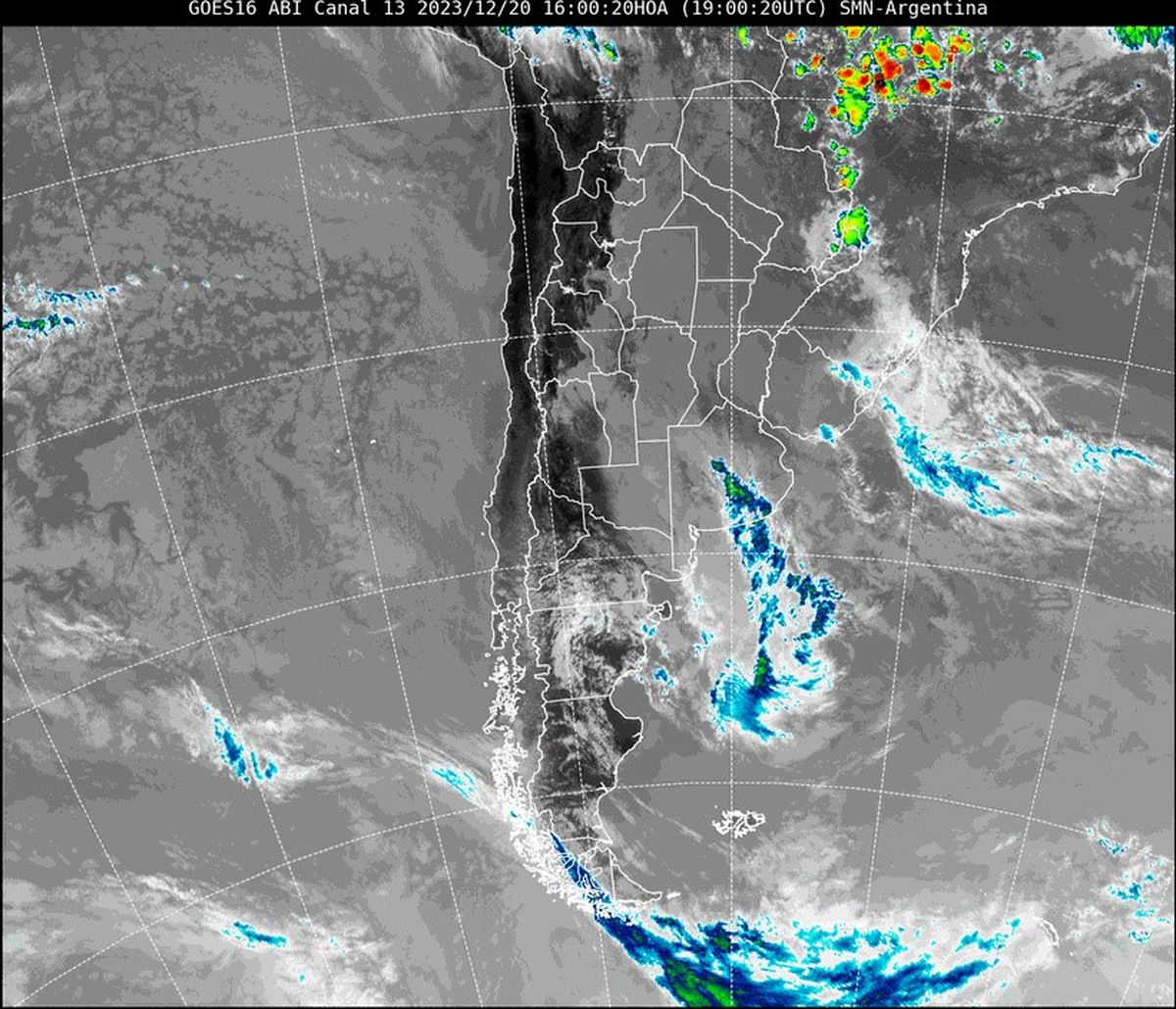 El experto en clima, Pablo Lucero, informó que: "en la imagen satelital se observa que la mayor parte del territorio nacional se encuentra cubierto de nubosidad. Particularmente, el norte tiene abundante nubosidad de baja altura que produce algunas lloviznas aisladas, mientras que el sur bonaerense tiene lluvias y algunas tormentas".