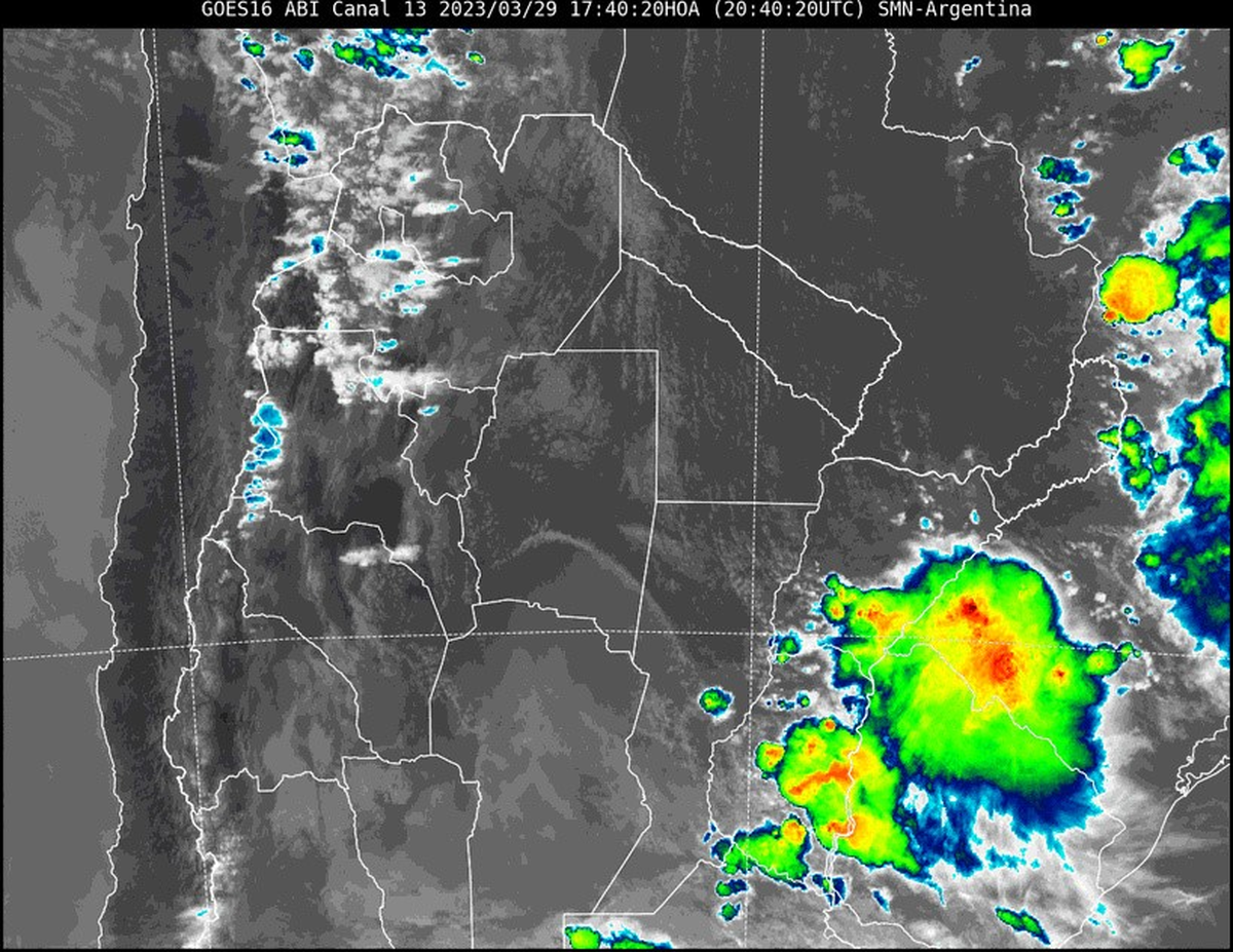 “También puede observarse en la imagen el frente de viento que avanza hacia el norte (línea curva en el sur de la provincia de Santiago del Estero y Santa Fe). Esta situación de inestabilidad se prolongará hasta las primeras horas del viernes. De esta manera, podrán ocurrir lluvias y algunas tormentas aisladas alternadas con mejoramientos temporarios. Esto es producto del acercamiento de un nuevo frente de aire frío, que producirá un descenso marcado de los valores desde la tarde del viernes”, señaló.