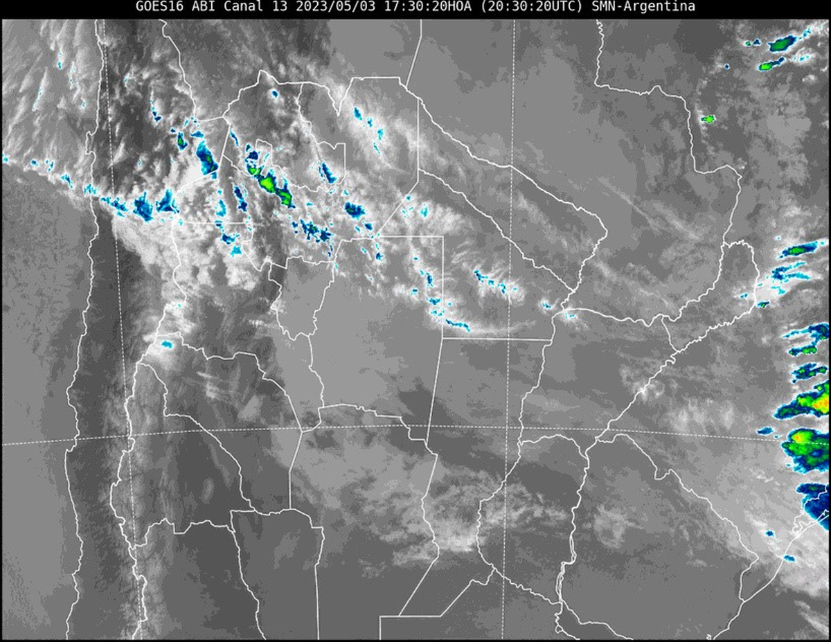 El experto en clima Pablo Lucero indicó que "en la imagen satelital se observa que nuestra provincia continúa con cobertura parcial del cielo. Esta nubosidad genera algunas garúas aisladas en algunos lugares. Esto se produce por el ingreso de aire fresco y húmedo en superficie desde el sudeste, y aire más cálido y también húmedo desde el noroeste en capas medias de la atmósfera".