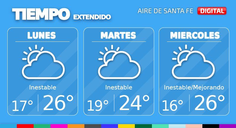 El miércoles aún serán inestables las condiciones, con cielo predominantemente cubierto y baja probabilidad de precipitaciones aisladas, mejorando hacia la noche. La temperatura mínima será de 16°, la máxima de 26° y habrá viento leve a moderado del sur.