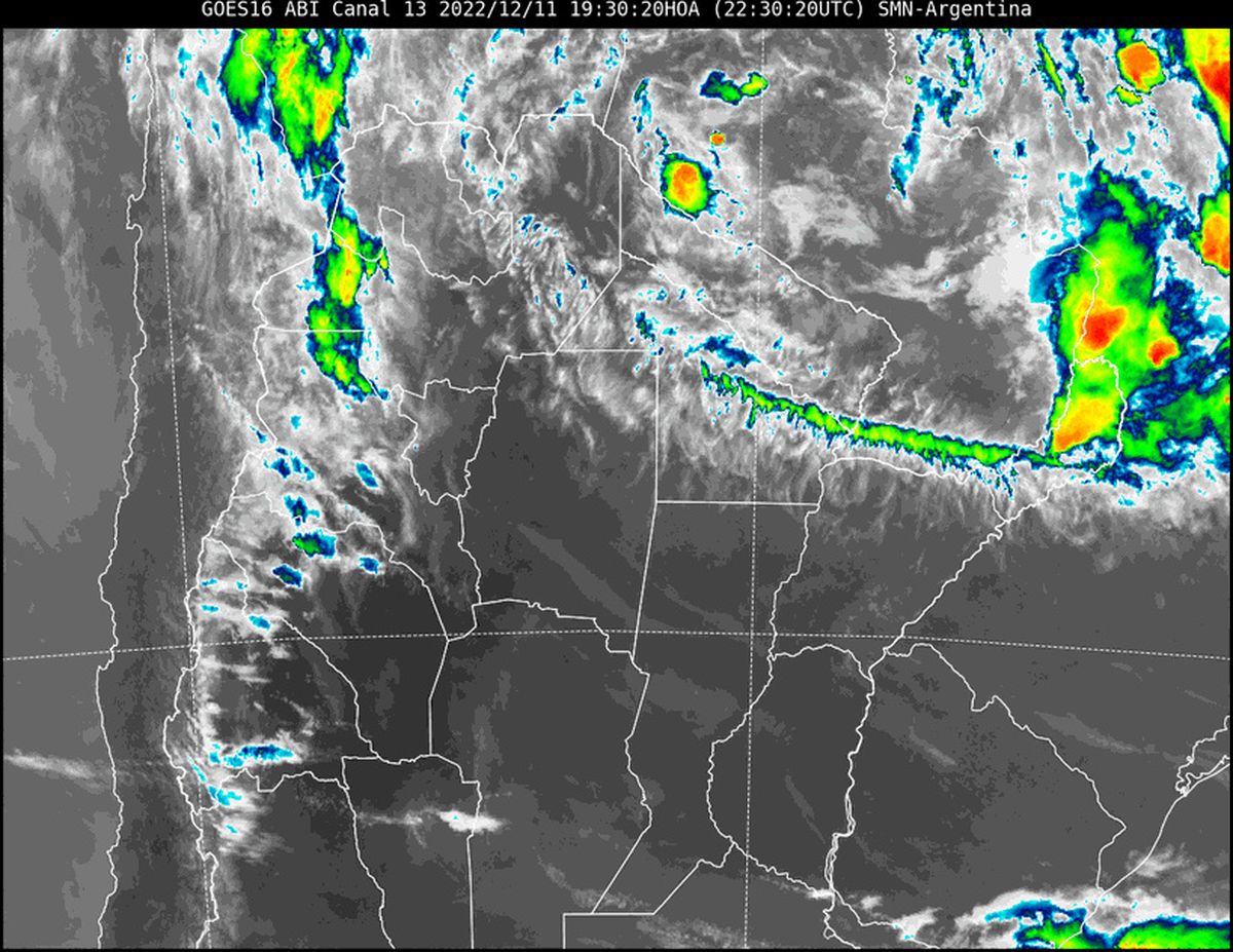 En la imagen satelital se observa que la provincia de Santa Fe continúa con poca nubosidad. Mientras tanto, avanza desde el sur una masa de aire frío que produce algunas lluvias y tormentas en el centro de la provincia de Buenos Aires. Por ello, se espera que en la ciudad de Santa Fe y la región se produzca una leve inestabilidad hacia el final de este domingo y durante la jornada del lunes. Aun así, las chances de mal tiempo son bajas, esperando que puedan ocurrir algunas lluvias y tormentas de forma aislada.