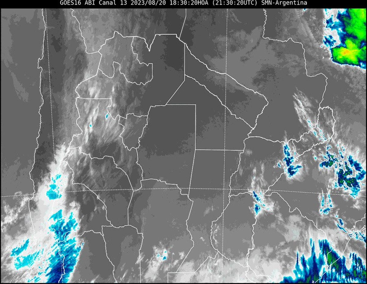 El experto en clima Pablo Lucero indicó que "en la imagen satelital se observa poca nubosidad en nuestra provincia. Esta situación, producida por una gran área de altas presiones y aire frío que ingresó a la región, se mantendrá en los próximos días".