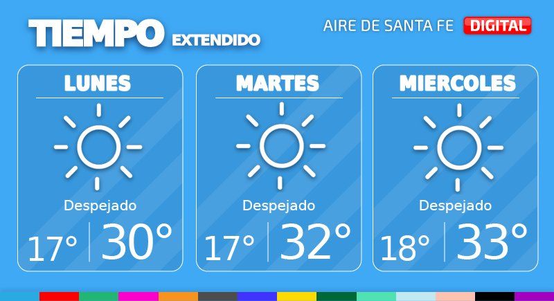 La semana hábil comienza con cielo despejado en la ciudad de Santa Fe. Este lunes se prevé poca nubosidad, una temperatura mínima de 17° y una máxima de 30°, con viento leve del sur.