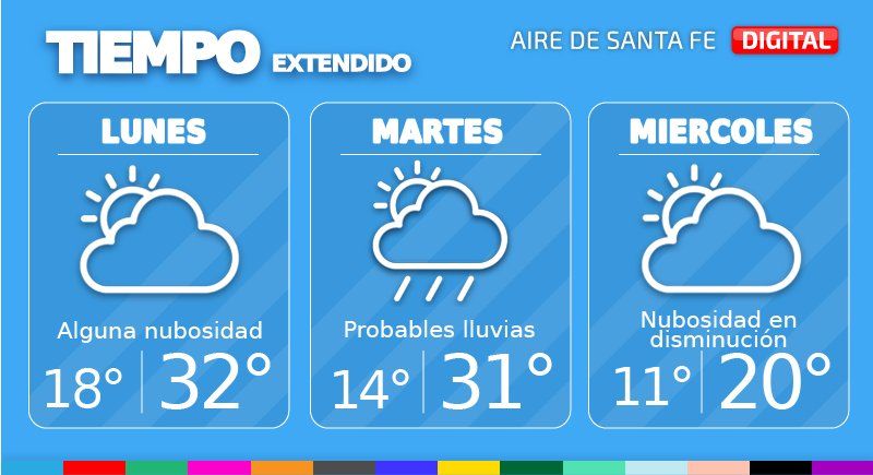 La semana comienza en la ciudad de Santa Fe con algunas nubes y temperaturas elevadas. Para el lunes, el pronóstico de tiempo indica cielo con alguna nubosidad, una temperatura máxima que rondará los 32° y viento leve a moderado del noreste.