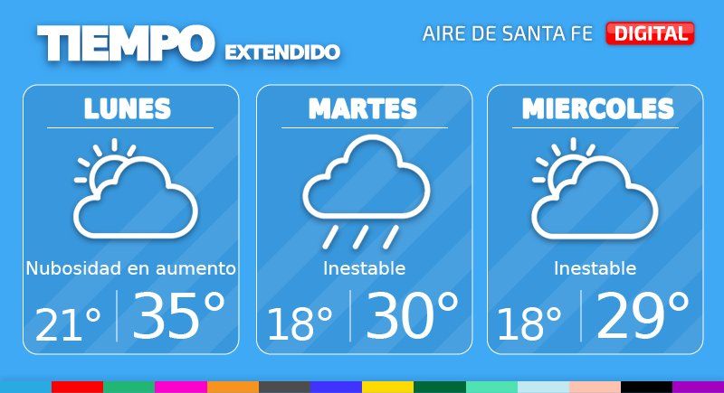 Este lunes se espera cielo con nubosidad en aumento en la ciudad de Santa Fe. La temperatura mínima será de 21° y la máxima de 35°, con viento leve del sudeste.