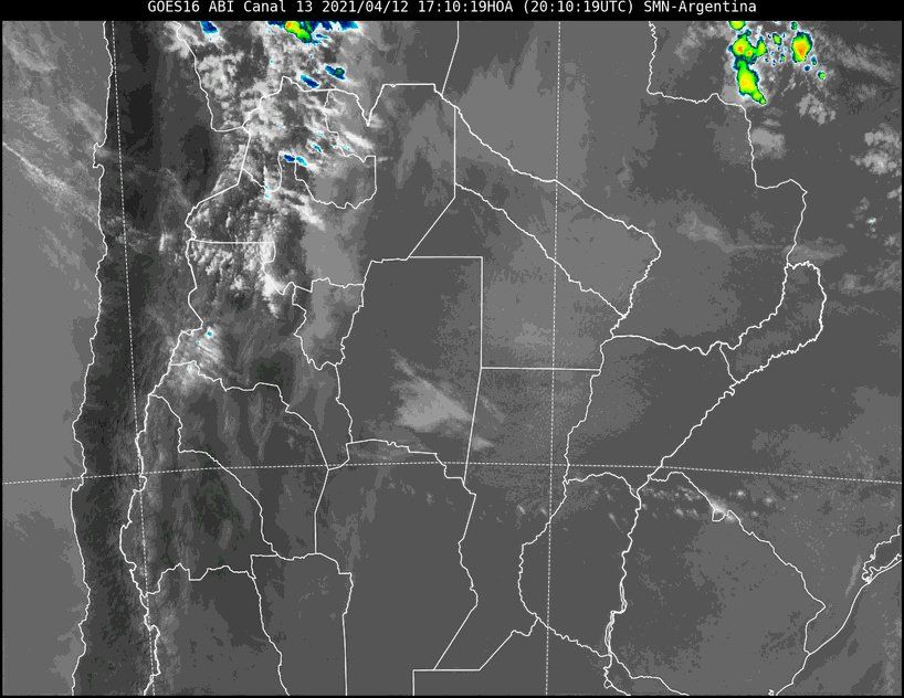 En la imagen satelital se observa poca nubosidad en el norte santafesino, el resto de la provincia con cielo despejado. La estabilidad es generada por una zona de alta presión asociada a una masa de aire fría y seca. Estas condiciones se mantendrán hasta el jueves al menos, manteniendo el cielo con poca nubosidad o parcialmente nublado.