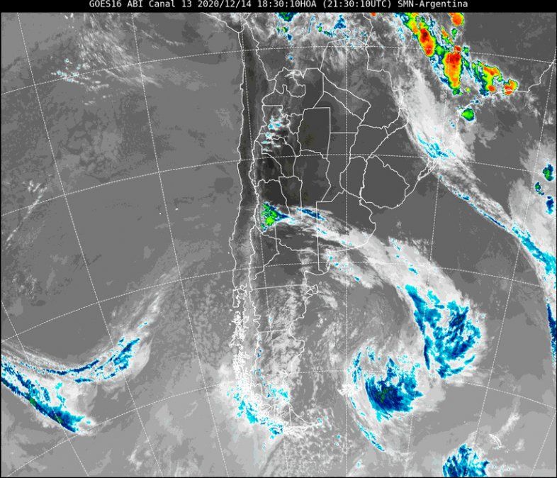 En la imagen satelital se observa el cielo santafesino totalmente libre de nubes. Sin embargo, avanza desde el sur otro pulso de aire frío que produce nubosidad en el sur de Mendoza, La Pampa y centro y sur de Buenos Aires. Este pulso estará llegando a nuestra región en el transcurso del día del martes, pudiendo producir algunas precipitaciones o alguna tormenta aislada.