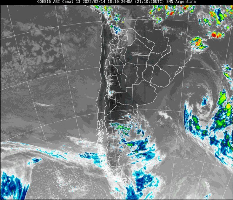 En la imagen satelital se observa que el cielo de la provincia de Santa Fe continúa totalmente despejado. El ingreso de aire cálido desde el noreste produce una rápida elevación de las temperaturas como estaba previsto.