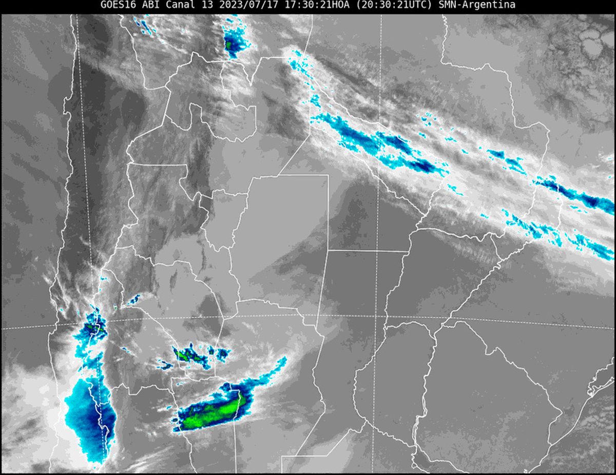 El experto en clima Pablo Lucero indicó que "en la imagen satelital se observa que la provincia continúa con poca nubosidad. Particularmente en la zona de la ciudad capital se encuentra despejada, lo que permitió algunas heladas en las primeras horas del lunes. La misma situación es posible este martes, si la nubosidad que se encuentra al oeste no logra cubrir el cielo".