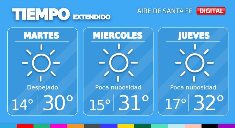 En la ciudad de Santa Fe, el martes el cielo estará despejado. La temperatura mínima será de 14°, la máxima de 30° y el viento leve a moderado del noreste.