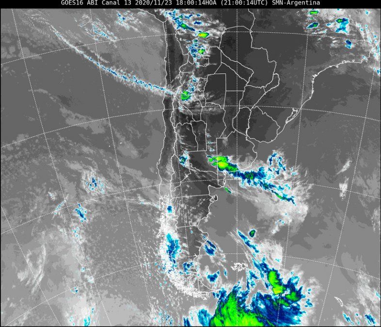 Se aproxima lentamente hacia esta zona del país un frente frío proveniente de la Patagonia que producirá un desmejoramiento en las condiciones del tiempo sobre la ciudad de Santa Fe. El frente estaría llegando a nuestra zona hacia finales de la jornada del martes, tal como lo indica la imagen satelital y la inestabilidad se mantendrá hasta la próxima semana. Para mañana se espera una temperatura mínima de 24°, máxima de 39° y viento leve a moderado del norte.