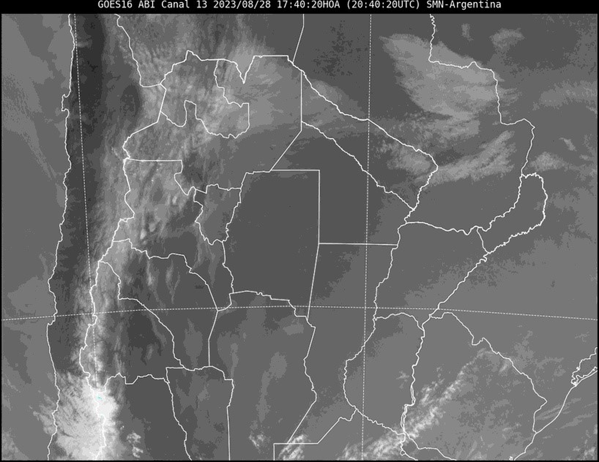 El experto en clima Pablo Lucero indicó que "en la imagen satelital se observa que continuamos con poca nubosidad en toda la región. Los efectos de la gran área de altas presiones mantienen estables las condiciones en toda la mitad norte del país".