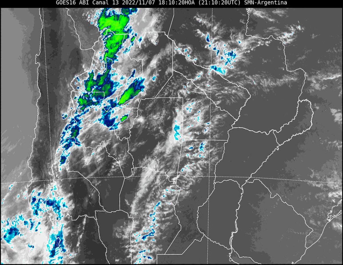 En la imagen satelital se observa algo de nubosidad ingresando desde el oeste. Continúa el ingreso de aire húmedo en altura desde el océano Pacífico, generando variabilidad en la nubosidad. De cualquier manera, en la jornada del martes se espera poca nubosidad durante el día. Hacia la noche la nubosidad comenzará a aumentar, para tener un miércoles parcialmente nublado.