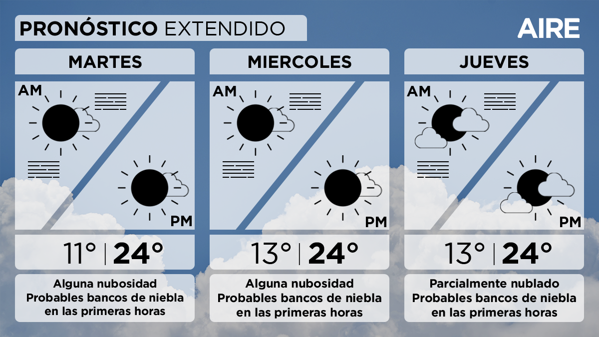Todos los días con probables neblinas y bancos de niebla matinales.