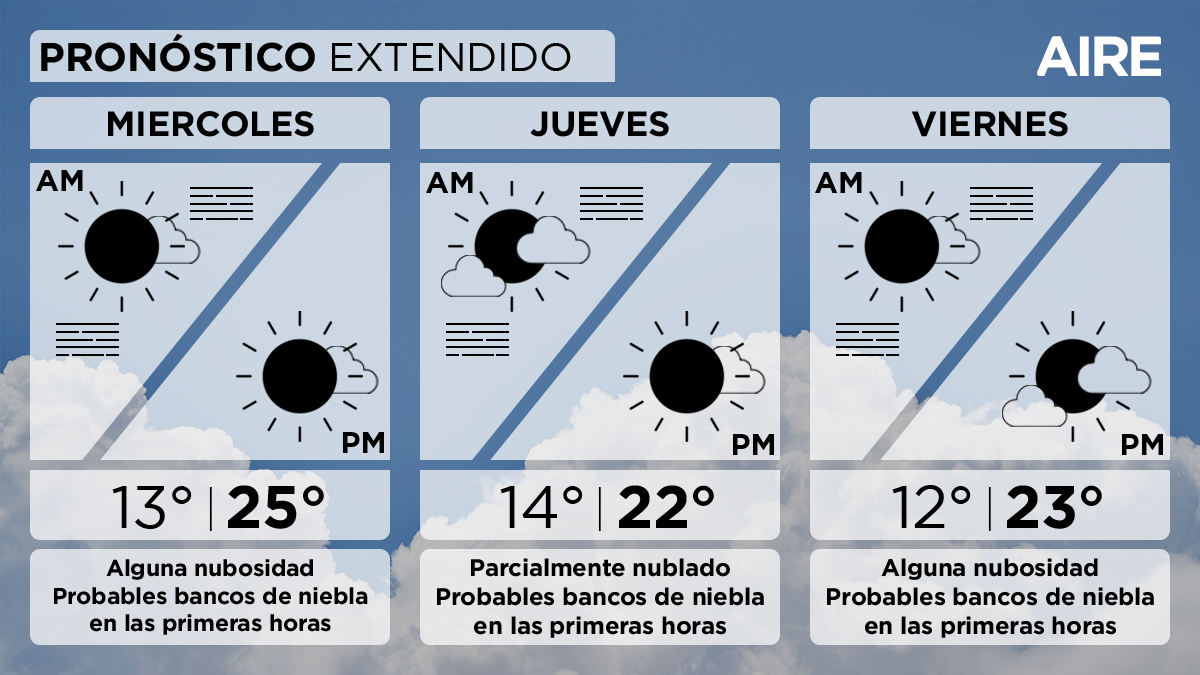 Todos los días con probables neblinas y bancos de niebla matinales.