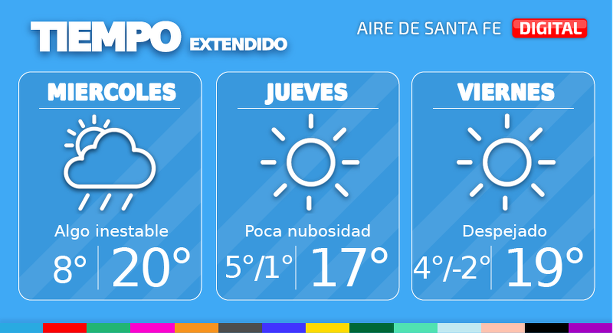 El miércoles se presenta en la ciudad de Santa Fe con algo de inestabilidad en las primeras horas y fuertes ráfagas de viento. La nubosidad que llega desde el sur de la provincia vendrá acompañada por una nueva rotación del viento al sur, que producirá otro ingreso de aire frío. Por este motivo no se descarta que en las primeras horas puedan ocurrir algunas precipitaciones.