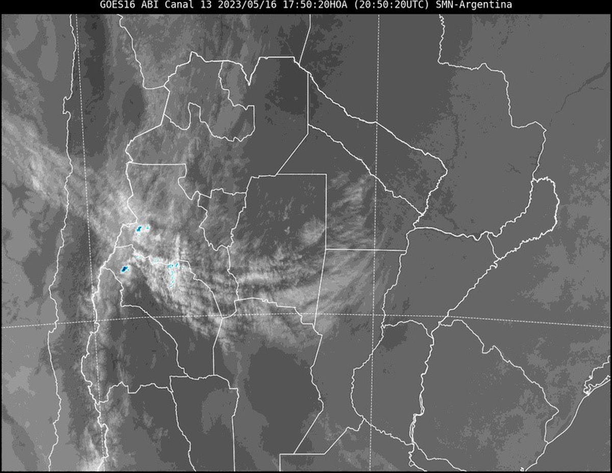 El experto en clima Pablo Lucero indicó que "en la imagen satelital se observa algo de nubosidad ingresando por el norte de la provincia que también comenzará a afectar la región el jueves, con algunas lloviznas aisladas".