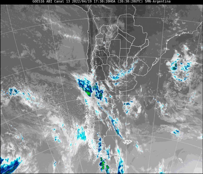 En la imagen satelital se observa que nubosidad cubriendo parcialmente el cielo del centro y sur provincial. Además, se observa el frente de aire frío comenzando a ingresar a la plataforma continental por la provincia de Neuquén. Este frente es el responsable del desmejoramiento en el transcurso de la jornada del miércoles. Se espera que desde la tarde o hacia la noche comiencen a formarse zonas de lluvias en nuestra provincia.