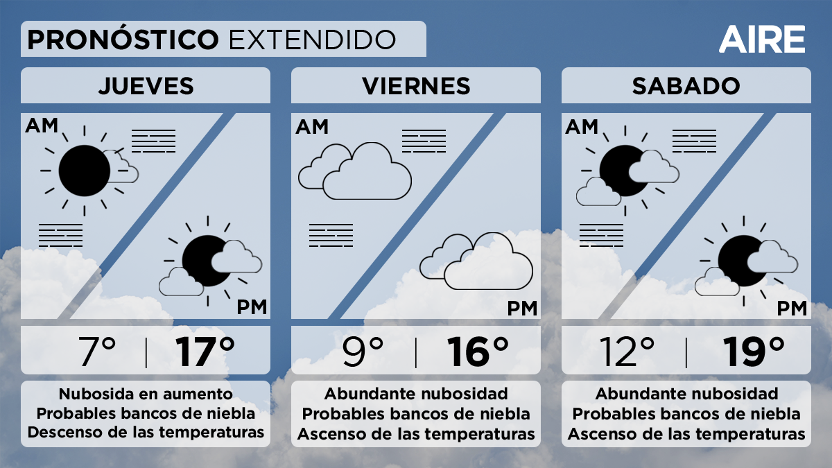 En este sentido, explicó que "esta nubosidad, combinada con el aire húmedo que ingresará con la rotación del viento al este, detendrán el descenso térmico. De esta manera, desde el viernes volveremos a tener abundante nubosidad y las temperaturas que comenzarán a recuperarse".