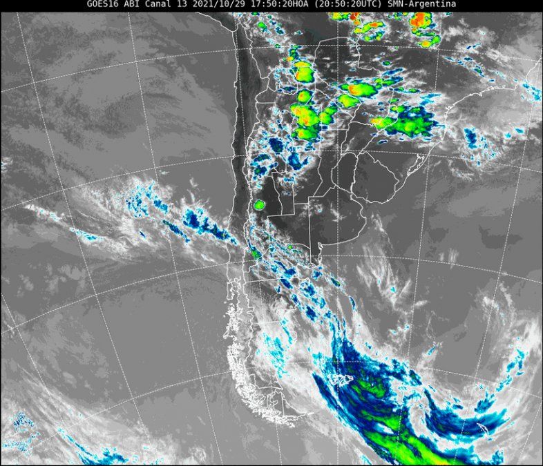 Esta situación se mantendrá durante el sábado, con un posible ingreso de humedad desde el este y noreste, por lo que la sensación térmica podría irse arriba de los valores reales. Recién el domingo con el acercamiento de un frente de aire frío desde el sur (visible en la imagen satelital cruzando el sur de las provincias de Río Negro y Neuquén), y la rotación del viento al sudeste por el reposicionamiento de los centros de alta y baja presión en la región producirán aumento de la nubosidad y un desmejoramiento de las condiciones. De esta manera, hacia la noche las condiciones estarán inestables, aunque las lluvias y tormentas se esperan durante lunes y martes (con un acumulado de lluvia en la región entre 10 y 30 milímetros, pudiendo alcanzarse los 65 milímetros en forma localizada en el extremo sur de la provincia, y también en algunos sectores del norte).