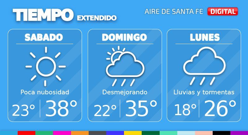 Este sábado habrá poca nubosidad en la ciudad de Santa Fe y la región. La temperatura mínima será de 23°, la máxima de 38° y habrá viento leve del noreste que rotará al este.