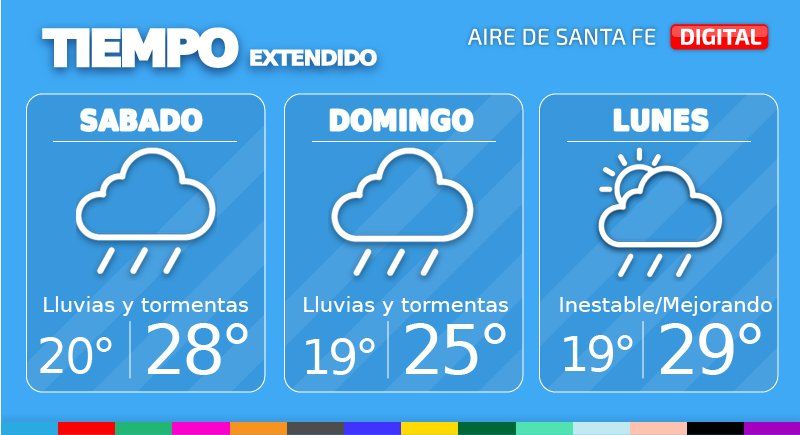 Tras las intensas lluvias del viernes, en el área metropolitana de la ciudad de Santa Fe la inestabilidad continuará durante todo el fin de semana. Para el sábado, se prevén condiciones inestables, esperando lluvias y tormentas durante toda la jornada. La temperatura mínima será de 20°, la máxima de 28° y habrá viento leve a moderado del sudeste.