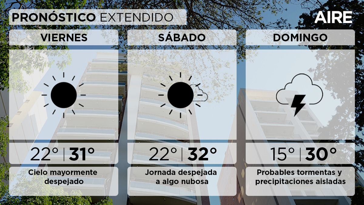El experto en clima Jorge Giometti anticipó en AIRE el pronóstico extendido para el fin de semana y aseguró que se espera "días con altas sensaciones térmicas producto de la elevada humedad en la región".