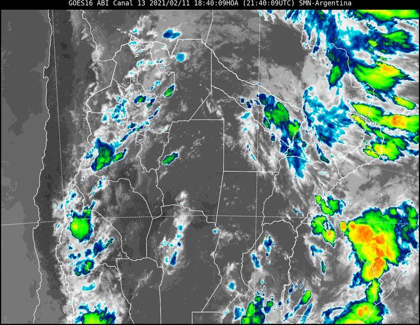 En la imagen satelital se observa poca nubosidad en nuestra provincia. Sin embargo, se trata de un mejoramiento temporario, ya que la configuración de las corrientes de aire permanece sin cambios desde dos días y se han producido lluvias y algunas tormentas en el centro y sur provincial. Además, en la imagen satelital puede observarse la forma espiralada de las nubes con centro en cercanías de la localidad de San Justo.