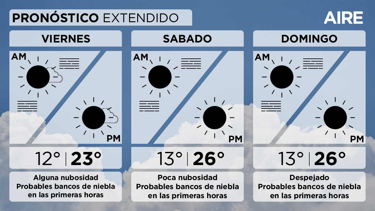 Todos los días con probables neblinas y bancos de niebla matinales.