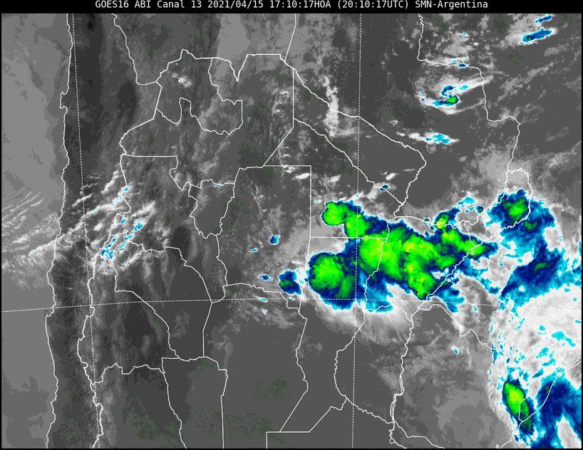 En la imagen satelital se observa abundante nubosidad asociada a inestabilidad en el norte provincial. Este jueves se produjeron lluvias y tormentas en los departamentos 9 de Julio, Vera y General Obligado. Se espera que las condiciones mejoren en el transcurso del viernes.