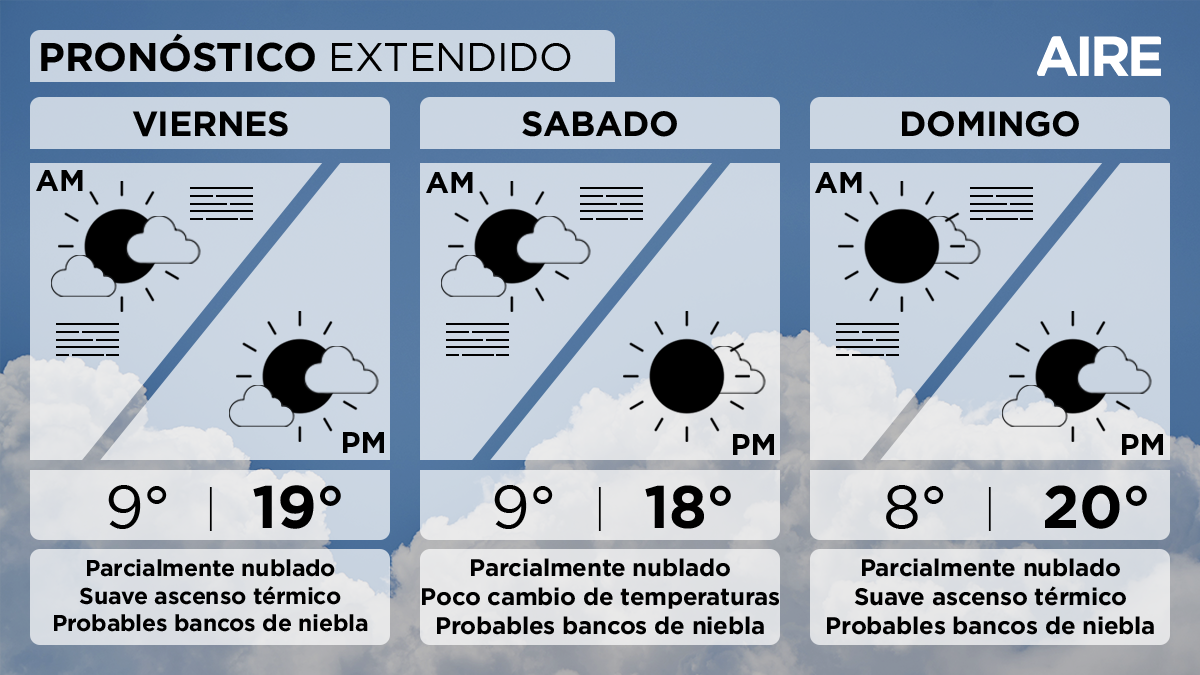 Todos los días con baja sensación térmica y probables bancos de niebla en las primeras horas.