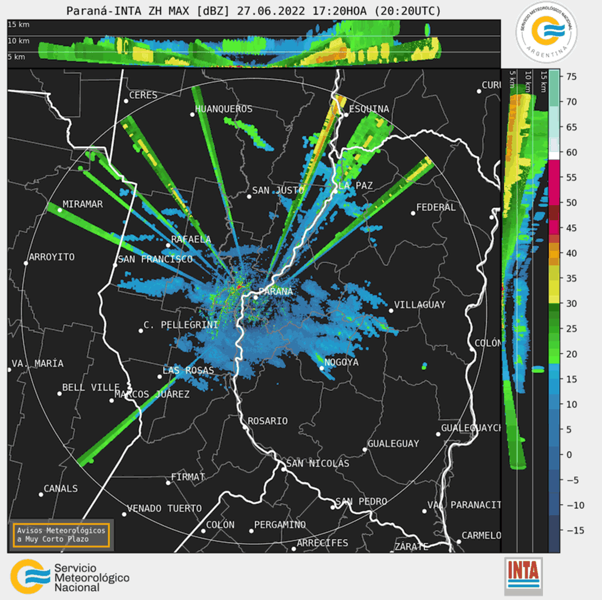 En la imagen satelital se observa abundante nubosidad asociada a inestabilidad cubriendo nuestra provincia. En el radar meteorológico se observan algunas lloviznas en la zona centro. Esta situación tenderá a generalizarse durante la noche, pudiendo totalizar entre 5 y 15 mm de lluvia acumulada hasta la mañana del martes.