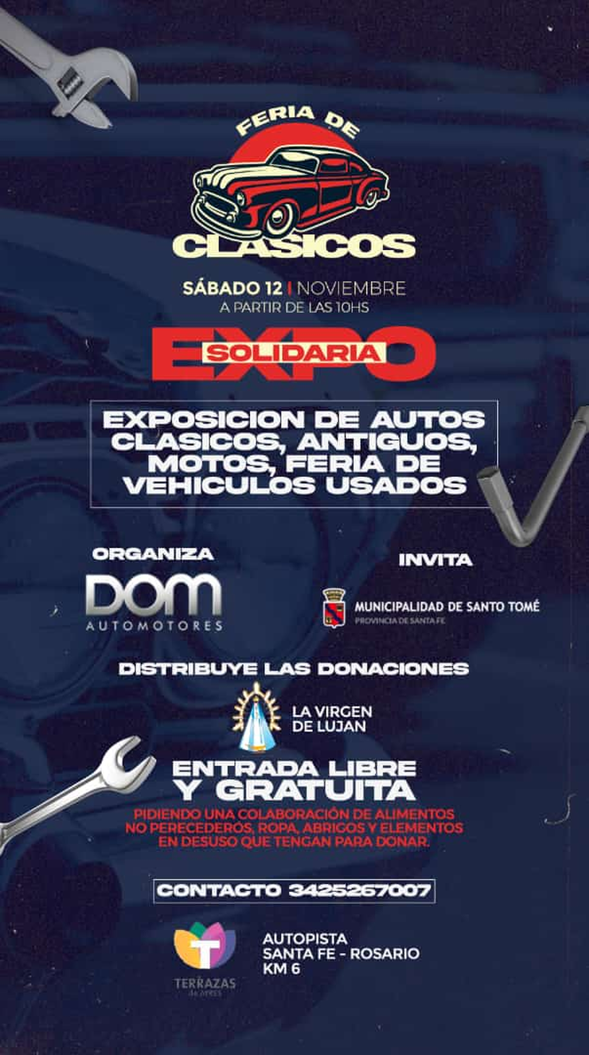 La entrada a esta Feria de Clásicos es libre y gratuita, pero se solicita una colaboración de alimentos no perecederos, ropa, abrigos y elementos en desuso, que serán donados a la Parroquia Virgen del Luján.