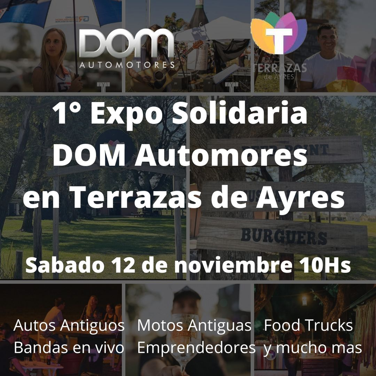 El próximo sábado, el amplio predio de Terrazas de Ayres será sede de la 1° Expo Solidaria de Motos y Autos Antiguos DOM Automotores, un evento que tendrá en exposición 50 vehículos clásicos. La propuesta incluye además bandas en vivo, food trucks, emprendedores, muestra de autos usados, juegos para niños, entre otras atracciones.