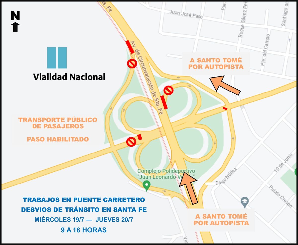 Para el ordenamiento del tránsito Vialidad Nacional convocó a los municipios de Santa Fe y Santo Tomé, la Agencia Provincial de Seguridad Vial y Policía Vial de la Provincia, organismos con los que se diseñó el operativo para respetar la restricción y reducir las demoras por los desvíos.