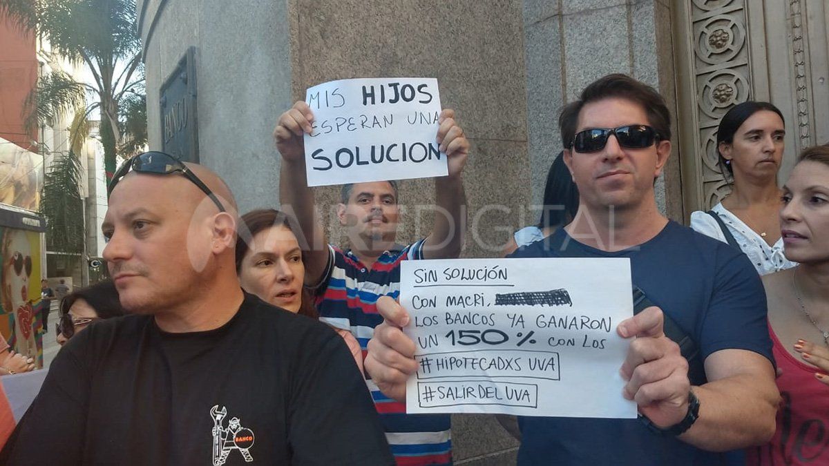 Un grupo de autoconvocados de tenedores de créditos hipotecarios UVA se manifestó en las puertas del Banco Nación de Santa Fe en repudio de las medidas anunciadas por el gobierno nacional que modifican el mecanismo de actualización de las cuotas. Las expresiones tuvieron lugar en numerosas ciudades argentinas.