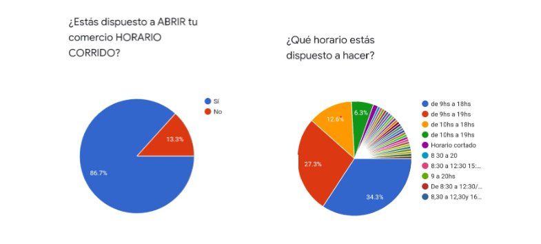 De igual manera, los resultados de la consulta a más de 300 comercios de la Peatonal son contundentes: el 86,7% está de acuerdo en abrir sus comercios en horario corrido, mientras que solo el 13.3 % lo rechaza.