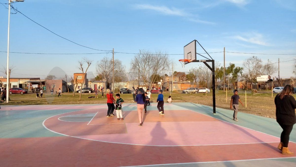 La plaza que está ubicada en la manzana compuesta por calles Matheu, Zavalla, Azcuénaga y San Juan, cuenta con un playón deportivo renovado con un solado nuevo y aros de básquet para incentivar a la práctica del deporte.