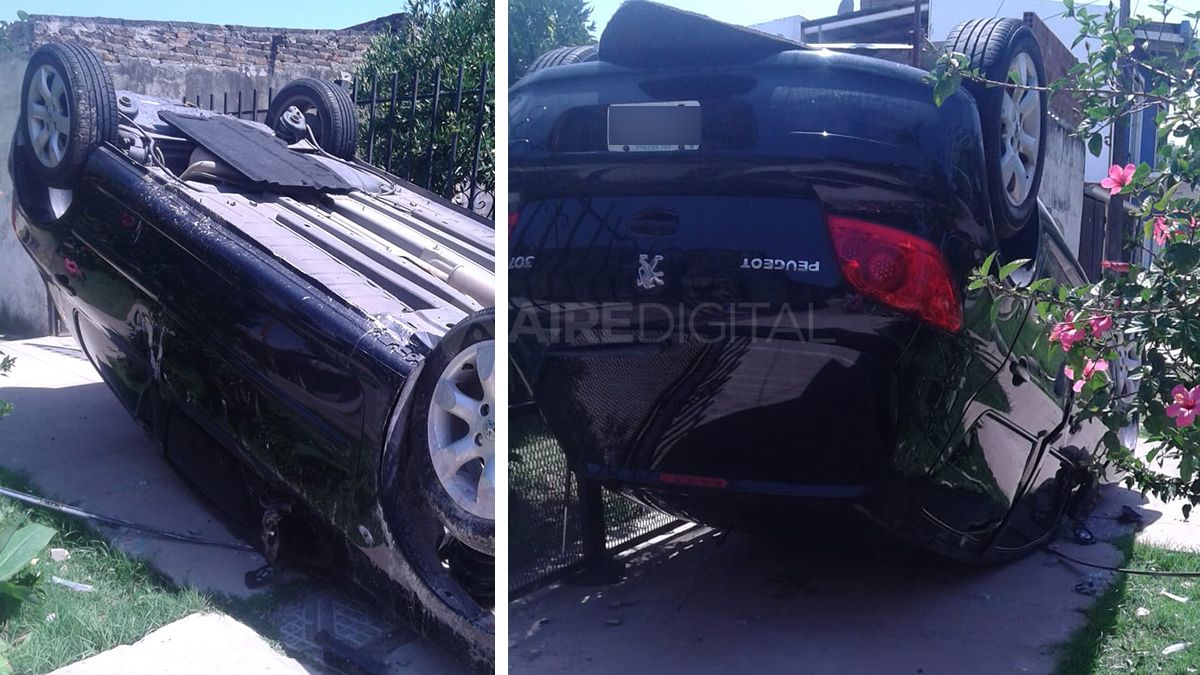 El vehículo quedó ruedas para arriba en el ingreso de una vivienda ubicada en Pedro Thomas de Larrechea y Misiones, al extremo noroeste de la ciudad de Santa Fe.