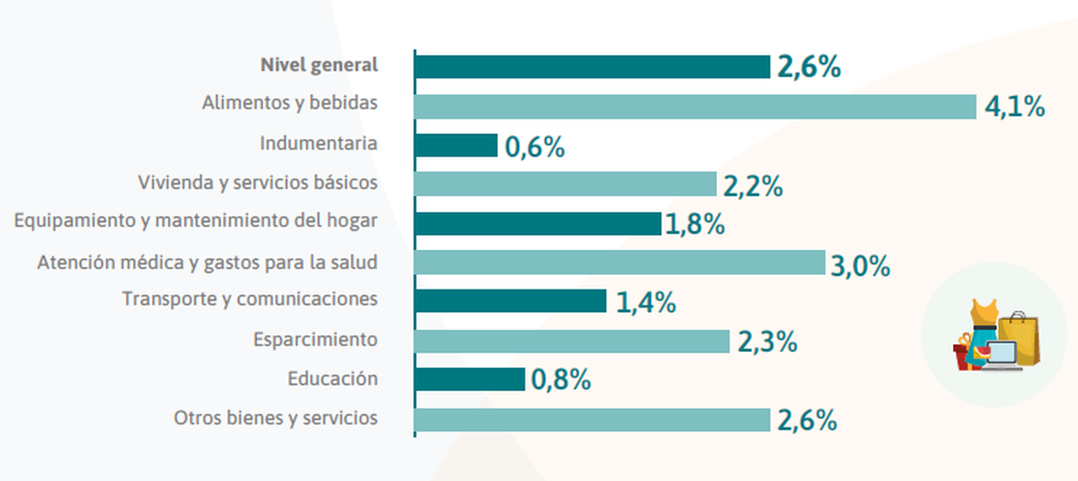 La inflación en Santa Fe estuvo impulsada por los rubros “Alimentos y bebidas” que se disparó un +4,1%, seguido por “Atención médica y gastos para la salud” con 3,0% y "Otros bienes y servicios", con un +2,6%.
