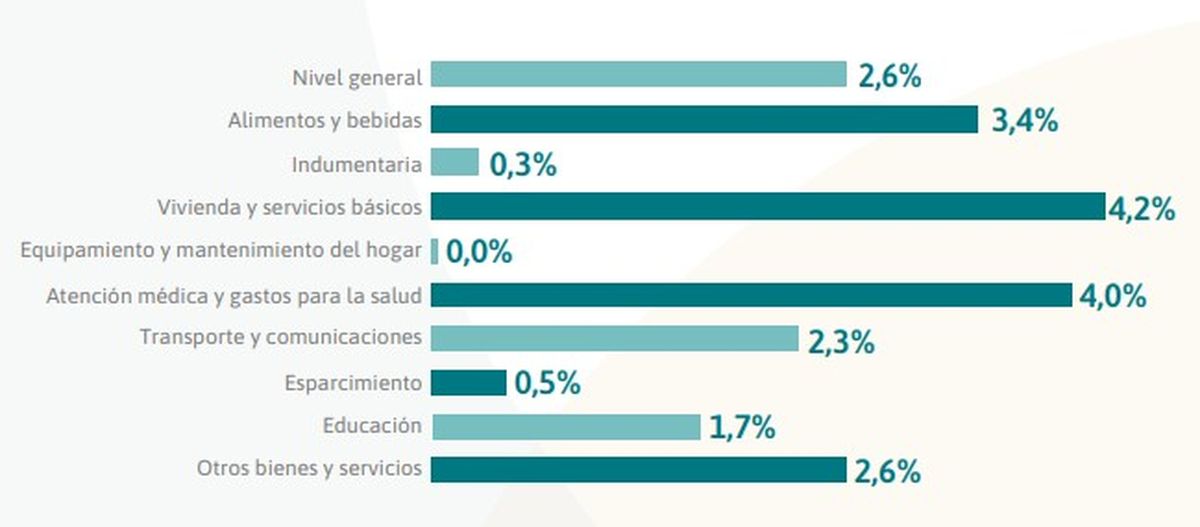 La inflación en Santa Fe estuvo impulsada por los rubros “Vivienda y servicios básicos” que se disparó un +4,2%, seguidos por “Atención médica y gastos de salud” con un +4,0%.