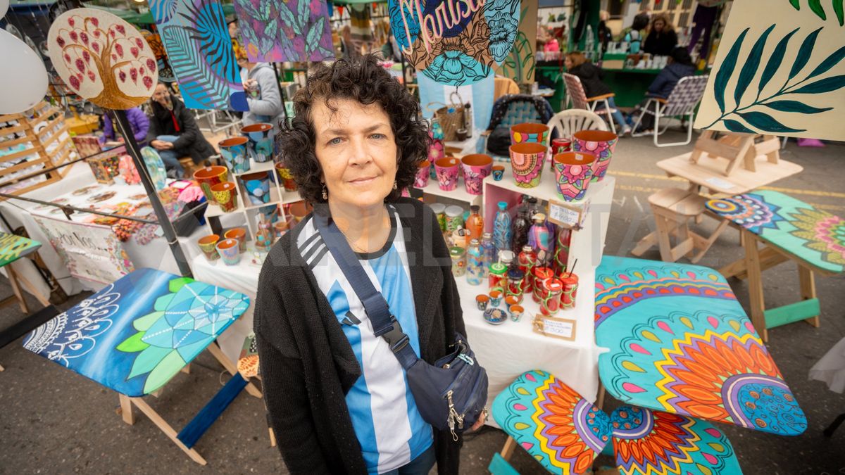 Marisa Tuosto, quien se encontraba vestida con una camisera de la Selección Argentina, comenzó su gran emprendimiento hace ocho años, pero su verdadera motivación para emprender y salir a feriar comenzó años antes. "El camino por las artesanías que realizo, inicio el día en que mi hija sufre un grave accidente. Tras el accidente comencé a tener mucho estrés y una gran bruma mental que me hacía recaer, pero para desacelerame y motivarme a seguir, la única salida que tuve fue pintar".