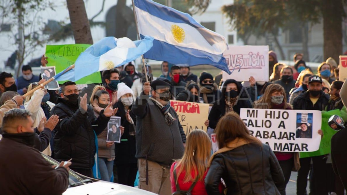 Una significativa cantidad de vehículos marchó con bocinazos desde la remisería Virgen de Luján, donde trabaja el policía, hacia el Palacio de Tribunales. Personal de la policía motorizada acompañó la movilización para cortar las calles transversales por donde pasaban los vehículos.