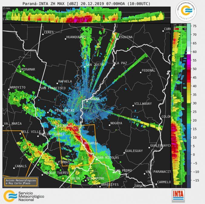 "Estas tormentas podrían estar acompañadas fundamentalmente por intensas ráfagas, fuerte actividad eléctrica y en forma muy localizada, abundante caída de agua en cortos períodos con ocasional caída de granizo. Las condiciones tenderán a mejorar de sur a norte en la región durante la tarde de hoy. Se prevén valores de precipitación acumulada durante todo el período de entre 30 y 60 milímetros", adelantaron desde el SMN.