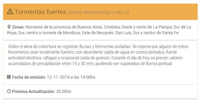 El centro de la provincia de Santa Fe se encontraba este lunes por la tarde bajo alerta meteorológico por tormentas fuertes, que en las próximas horas podrían afectar a la capital acompañadas por intensa actividad eléctrica, abundantes precipitaciones, ráfagas de viento fuerte y ocasional caída de granizo de tamaño chico a mediano.