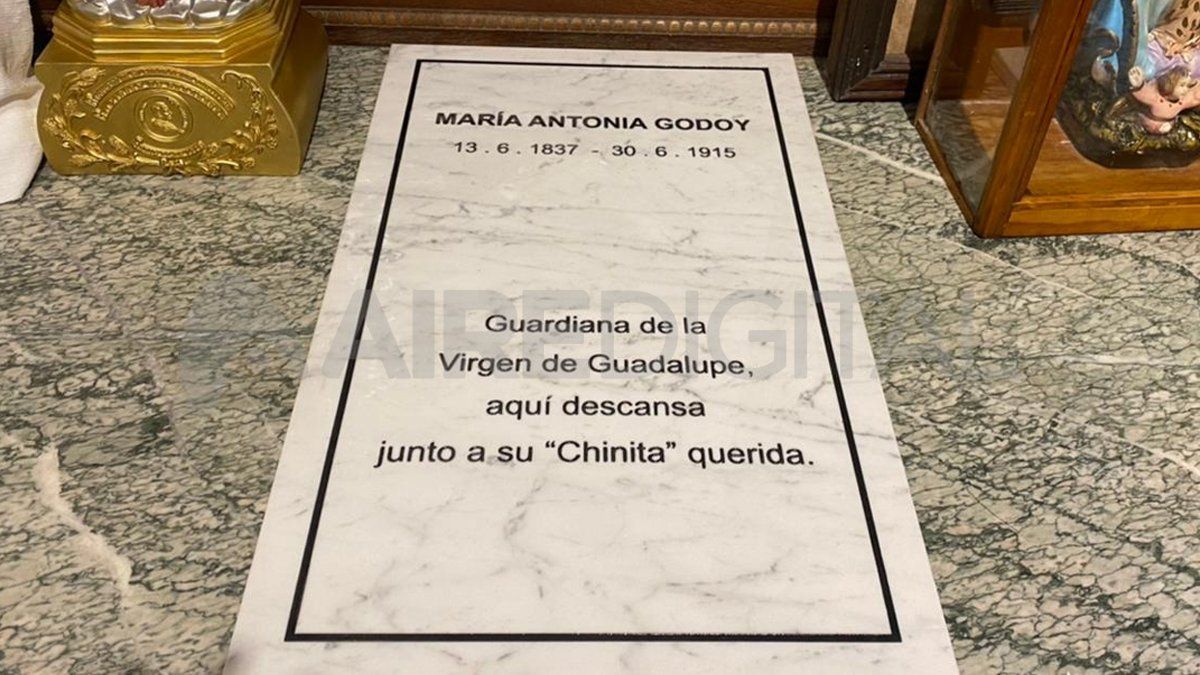Este lunes, desde las 19.30, los restos de María Antonia Godoy, la última "guardiana" que tuvo la Virgen de Guadalupe, serán trasladados desde el Cementerio Municipal a la iglesia y sepultados a los pies de su querida “Chinita”, como solía llamar a la imagen que custodió durante años. Los fieles de la Basílica de Guadalupe vivirán una ceremonia que quedará plasmada para siempre en su memoria.